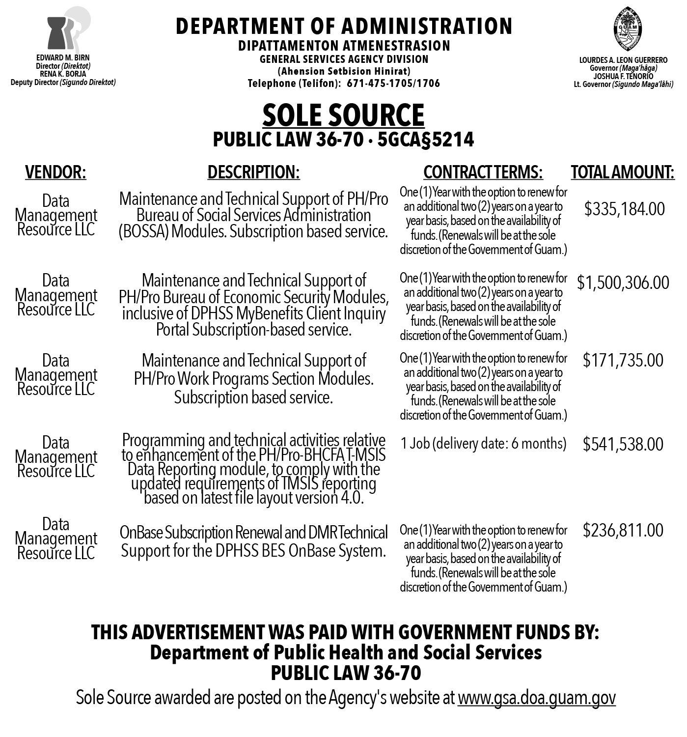 Sole Source - Data Management Resources LLC - PH/Pro Maintenance and Technical Support, OnBase Subscription and Technical Support ANNOUNCEMENT Posted on: 04/10/2026 08:11 AM Posted by: Ryan Eriksen, Buyer II Department(s): GENERAL SERVICES AGENCY Division(s): GENERAL SERVICES AGENCY Notice Topic(s): GENERAL ANNOUNCEMENT Types of Notice: ANNOUNCEMENT For Audience(s): PUBLIC Share this notice Sole Source - Data Management Resources LLC - PH/Pro Maintenance and Technical Support, OnBase Subscription and Technical Support (click to view) Sole Source - Data Management Resources LLC - PH/Pro Maintenance and Technical Support, OnBase Subscription and Technical Support Share through Whatsapp, Facebook, Email and more…